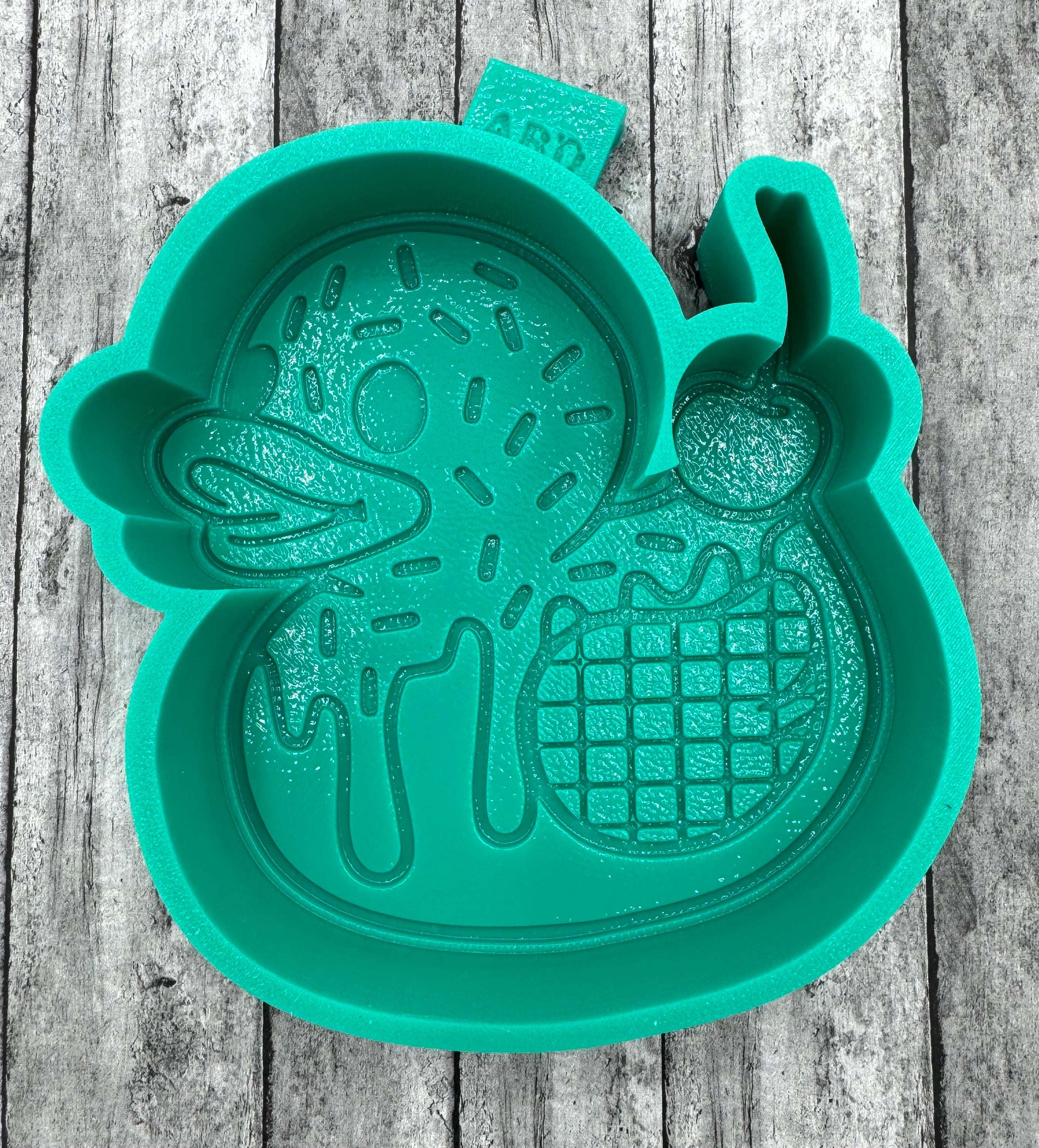 This Ice cream Duck Silicone Mold is perfect for your creative side. Made of silicone, it is durable and easy to use. Measuring 4 in x 3.5” x 1 in.